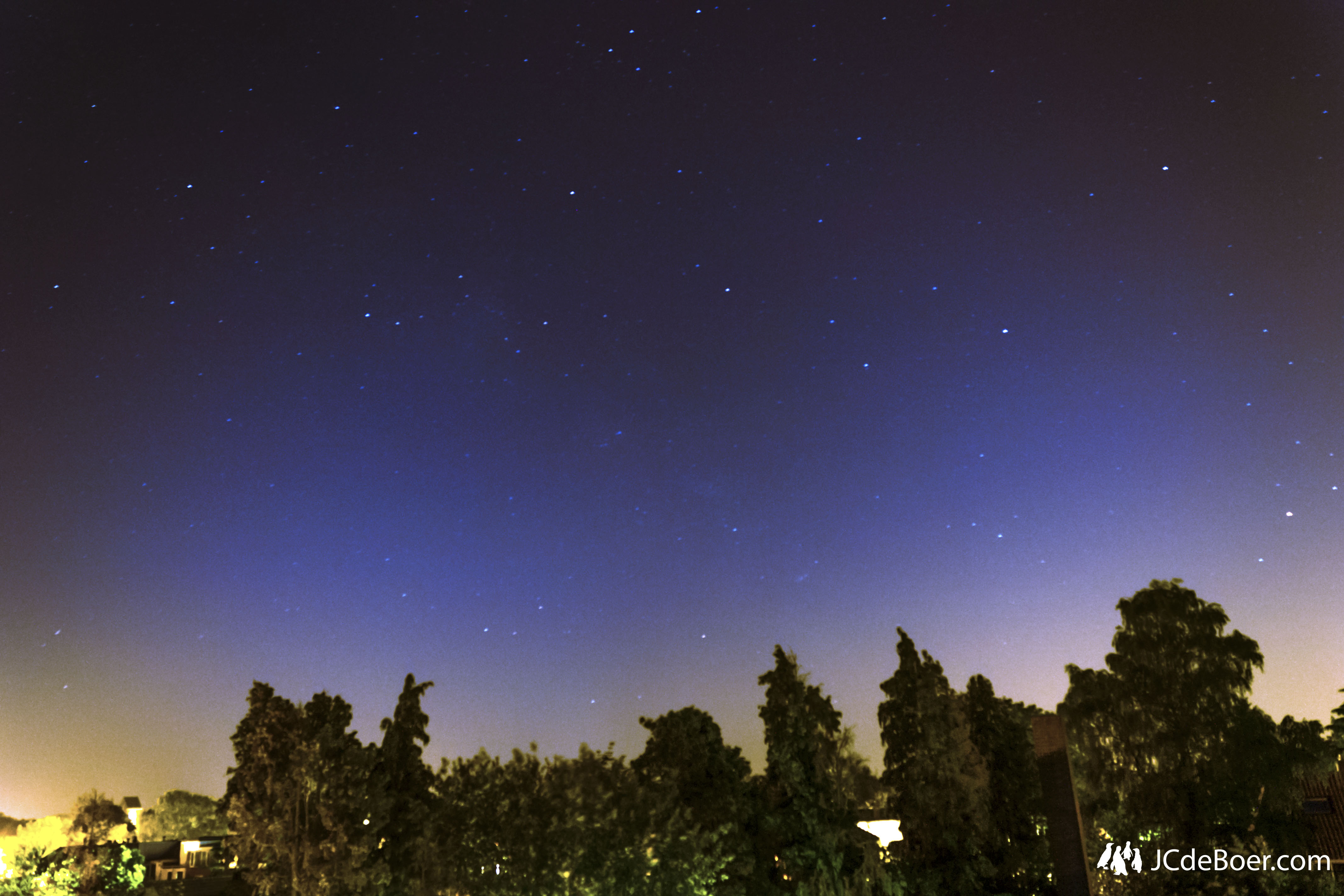 The past few weeks I’ve been trying to make a proper Milky Way shot from Enschede, which turned out to be very difficult. First of all, only a very faint part of the Milky Way is visible here in Holland and second, Enschede has too much light pollution. Although the light pollution in Enschede is not as bad as in Amsterdam, there is definately no Milky Way visible to the naked eye (limiting magnitude 4 – 5). From a 30 sec, ISO 6400, 18mm image I did manage to bring out some faint signs of the Milky Way over Enschede: