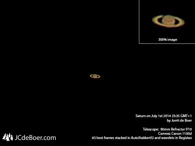 Saturn Published July 7, 2014 at 640 × 480 in M27, M31, M57 and Saturn ← Previous Next → Saturn through a 90mm reflector with fairly good seeing Share this: Share on X (Opens in new window) X Share on Facebook (Opens in new window) Facebook Email a link to a friend (Opens in new window) Email Like Loading...