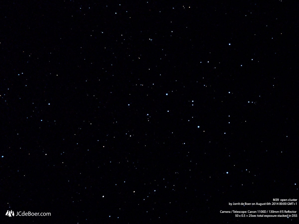 M39 Published August 6, 2014 at 1280 × 960 in The Moon, Albireo, M39, M13 and M11 ← Previous Next → Telescopic view of open cluster M39 Share this: Share on X (Opens in new window) X Share on Facebook (Opens in new window) Facebook Email a link to a friend (Opens in new window) Email Like Loading...