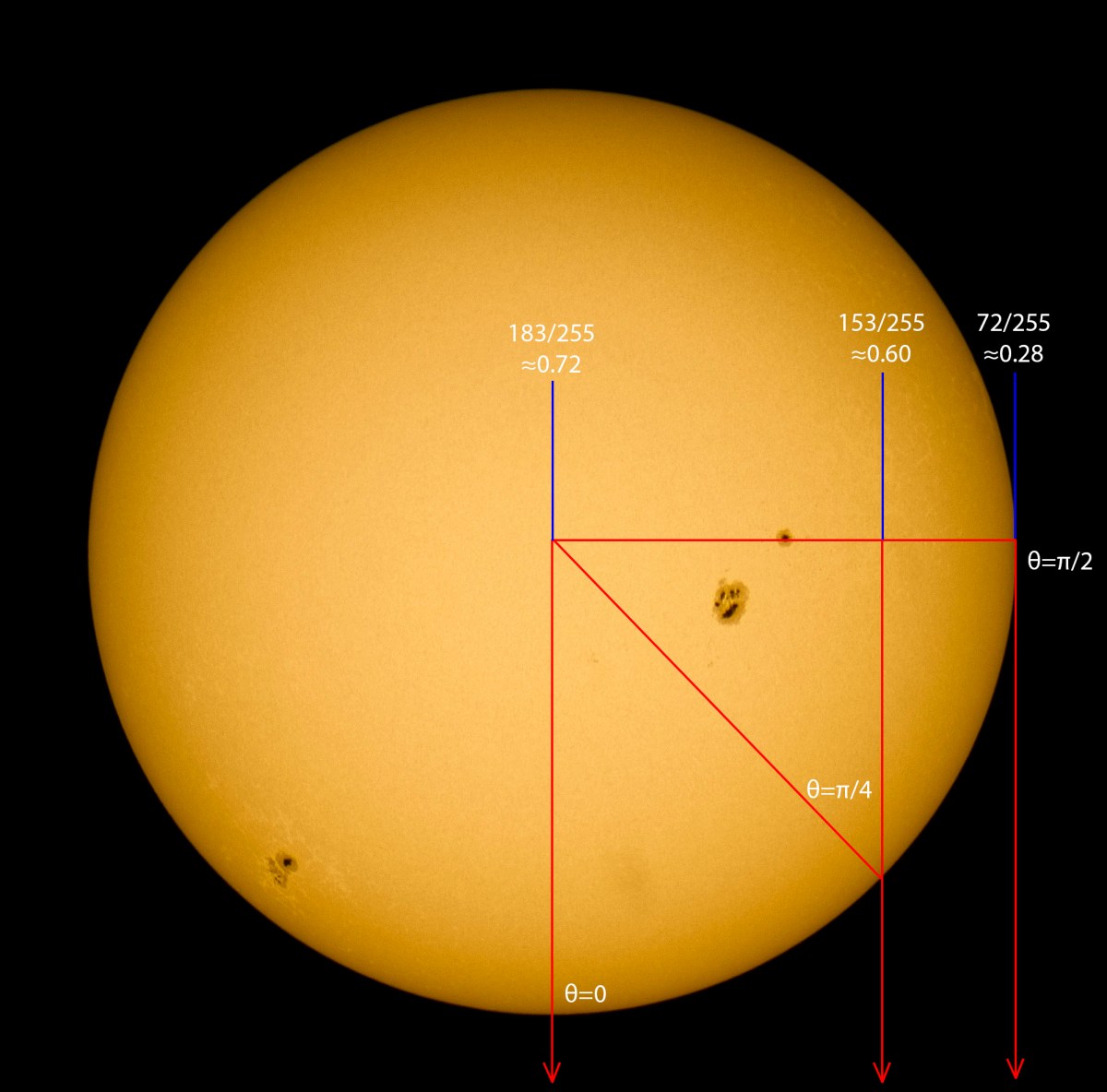 limb_darkening Published November 21, 2014 at 1999 × 1973 in Limb darkening in this image of today’s Sun ← Previous Next → Measured intensities at different angles Share this: Click to share on X (Opens in new window) X Click to share on Facebook (Opens in new window) Facebook Click to email a link to a friend (Opens in new window) Email Like Loading...