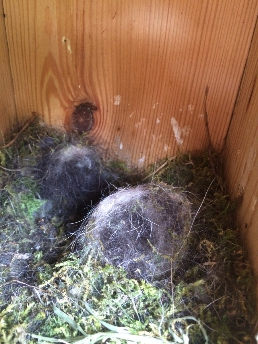 Someone started building a home here. There had probably been some cat-interference, because no birds have shown up in a while.