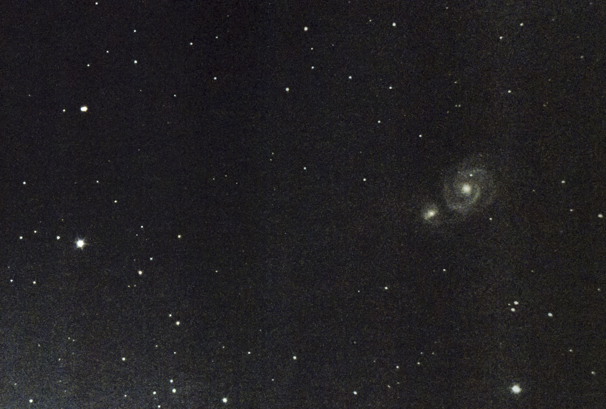The number of nice globular clusters visible in March in the Netherlands (at a reasonable hour) is rather low. The best is probably M3, which I decided to give a go. The result is the image below. Locating the cluster was hard because it was rather low near the horizon and nearby soccer field lighting made things even more difficult. Globular cluster M3 contains the mind blowing amount of half-a-million stars and lies about 34 thousand light years from Earth.