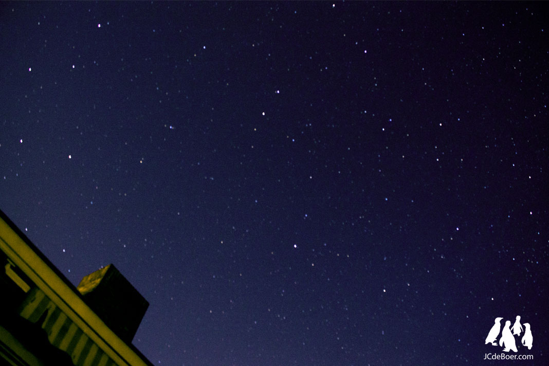 One of the best things about DSLRs is the ability to take long exposures. So I tried to take one. I found that focussing is difficult and that I should use as low ISO values as possible to reduce noise and skyglow. The image below is a 30 second wide field exposure at ISO800. I reduced the image size to 25% to hide star trailing (stars that seem to move due to the earth’s rotation) and the effects of my poor focussing. Next time I wil use live view on my laptop to get focus right and operate the camera without physically touching it. Later this week I expect to receive the rings required to attach the DSLR to my telescope. I’m looking forward to using that combination 🙂