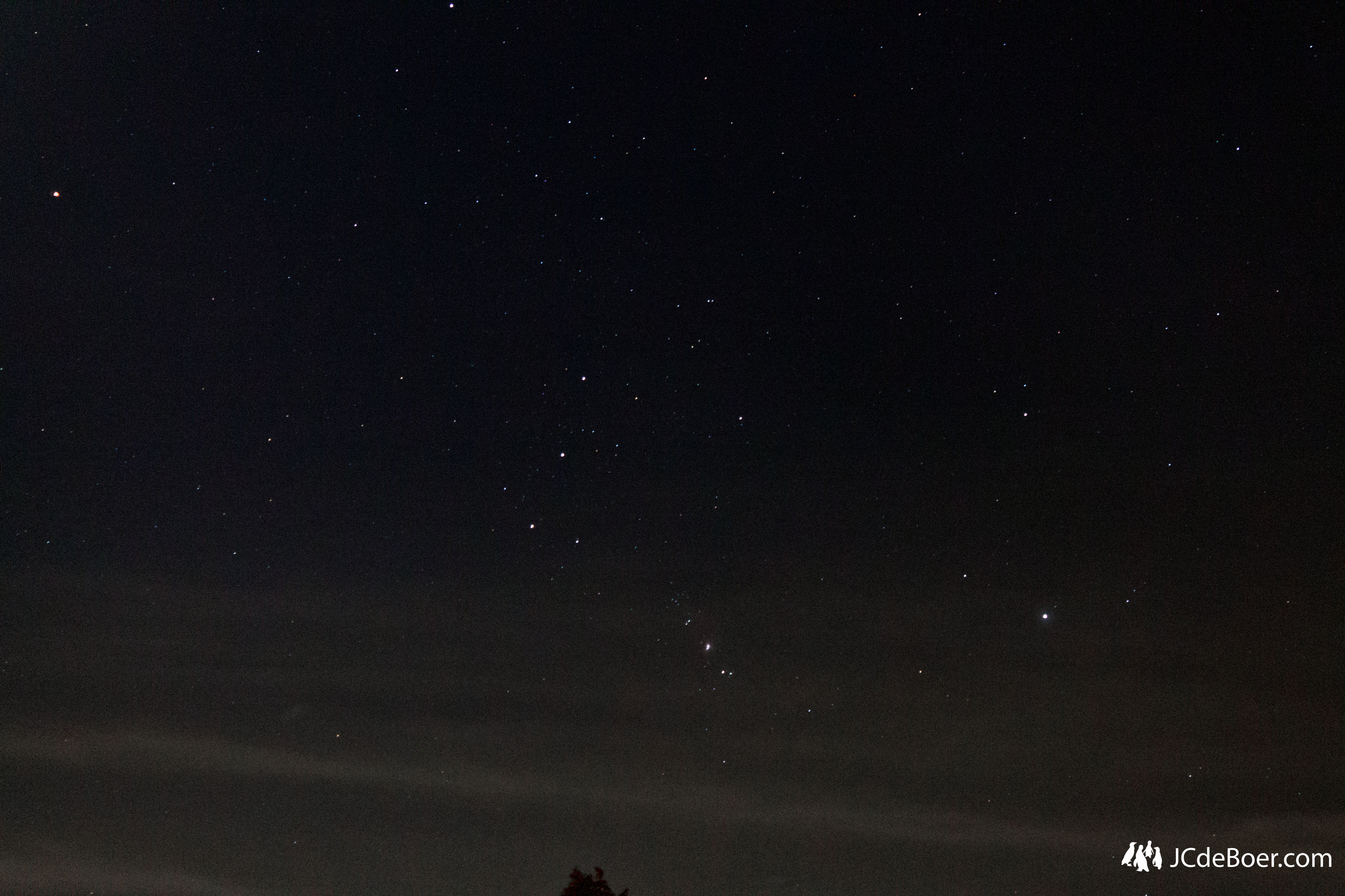 It’s about time to post some photos of my own again. These are photos I shot last night at about 1.30, when the Great Nebula in Orion (M42) just became visible through the clouds hanging low above the horizon. The images are single frames and were shot at ISO 6400 and 15 and 8 seconds exposure times respectively.