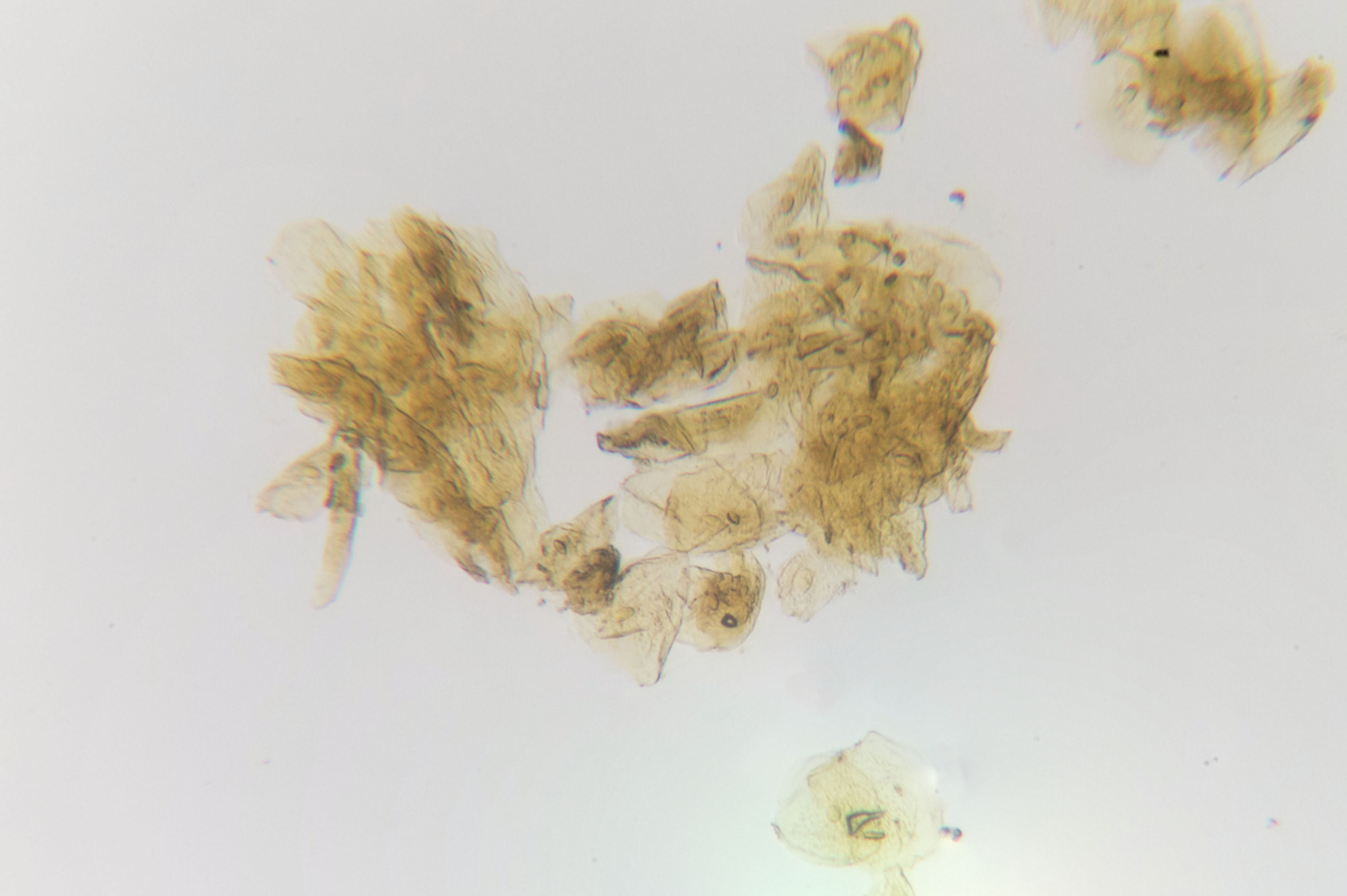 The last time I watched waterweeds under a microscope, I noticed a lot of these rectangular cells on top of the waterweed sample. I imaged one this time and determined it to be probably brown algae. These algae consist of tyipical rectangular cells that line up and form long strings.