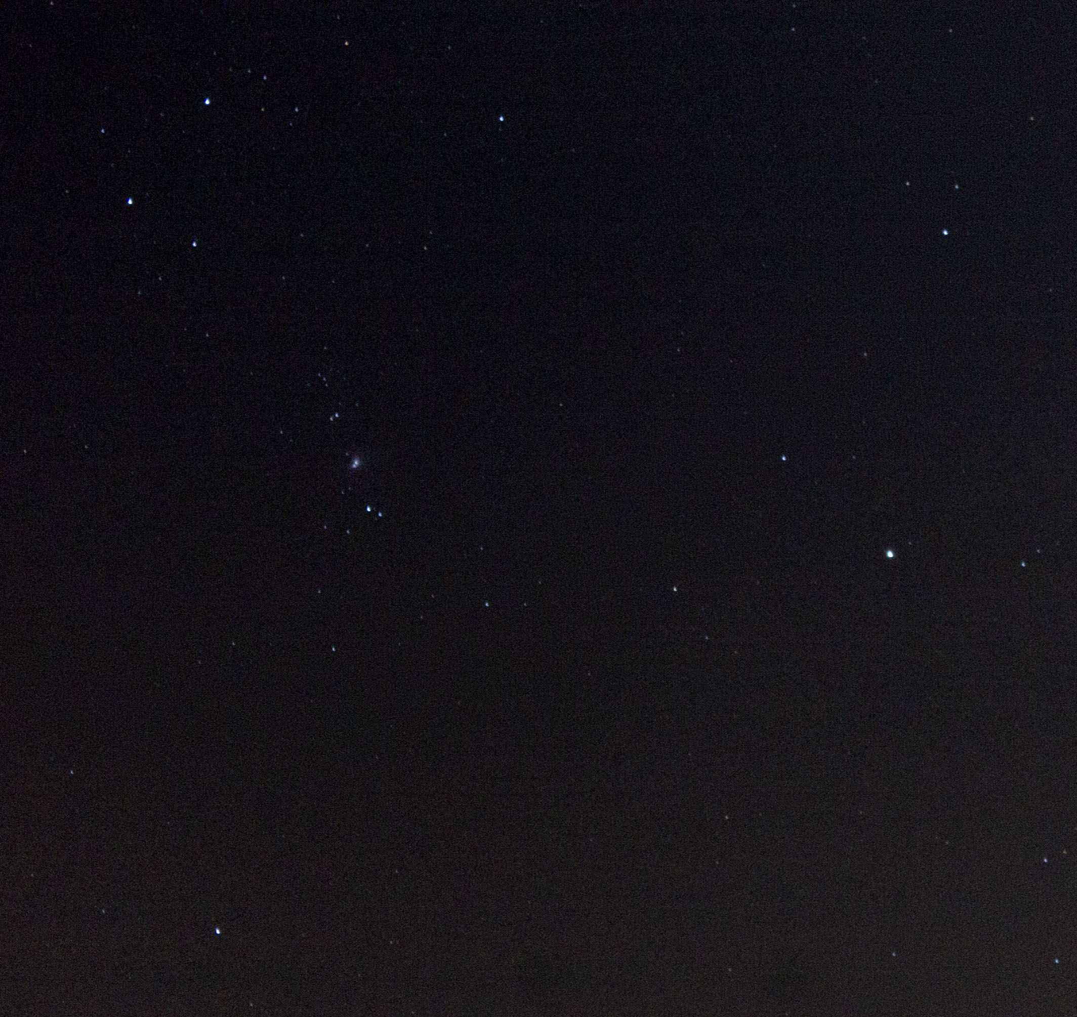 Ironically, New Year’s Eve had one of the clearest night skies I had seen for a while (before the major fireworks storm began). I took a not too long exposure of the Orion constellation using a 55mm lens on my camera, which shows some clear nebulosity of M42.